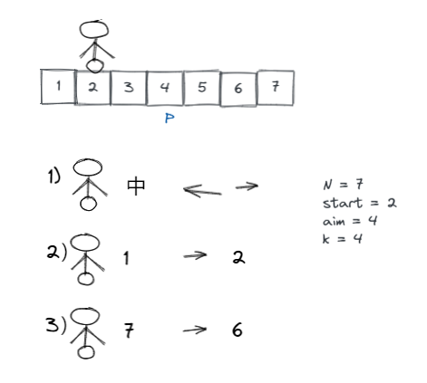 let p2 = robotWalk(range, curPos - 1, restStep - 1, aim);