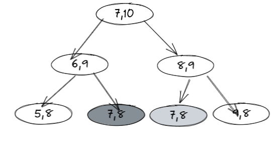 以上方式是纯暴力,上面方式的可变参数就两个,当前所在的位置(curPos)和剩余步数(restStep),假设当前位置在 7,剩余步数为 10,我们根据下图会发现后续有重复的过程,而且会有很多,所以我们可以用缓存剪枝策略来进行优化,后续也称记忆化搜索