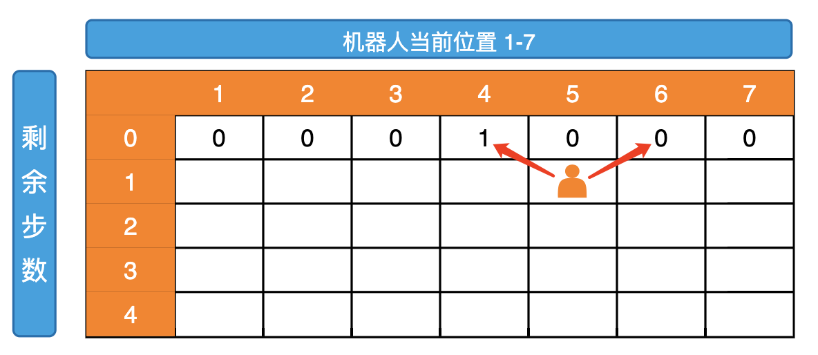 如果机器人来到中间位置,那么下一步可以往左走或者往右走;