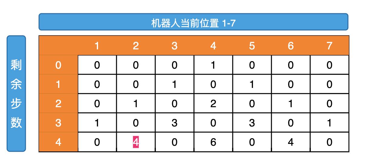 ways = robotWalk(range, curPos - 1, restStep - 1, aim);