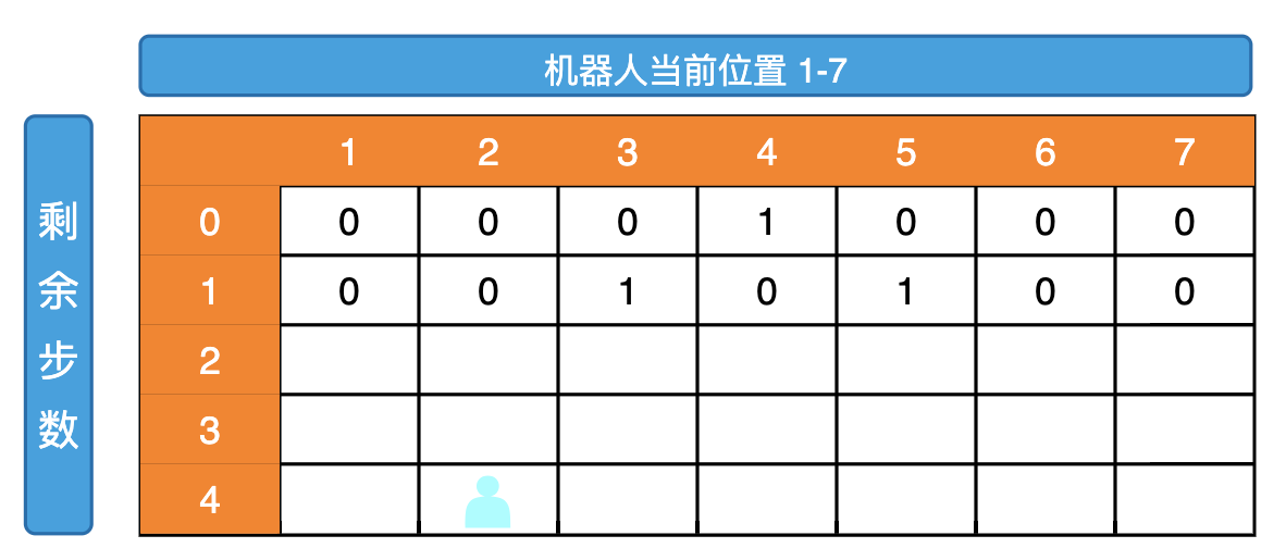 如果机器人来到 1 位置,那么下一步只能往右来到 2 位置;