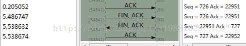 客户端发送最终序列号 727,通过将确认号加 1 的方式确认服务端的 FIN 包
