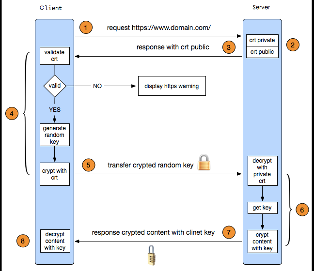 - 客户端收到服务器端的公钥之后,会对公钥进行检查,验证其合法性,如果发现发现公钥有问题,那么 HTTPS 传输就无法继续。严格的说,这里应该是验证服务器发送的数字证书的合法性,关于客户端如何验证数字证书的合法性,下文会进行说明。如果公钥合格,那么客户端会生成一个随机值,这个随机值就是用于进行对称加密的密钥,我们将该密钥称之为 client key,即客户端密钥,这样在概念上和服务器端的密钥容易进行区分。然后用服务器的公钥对客户端密钥进行非对称加密,这样客户端密钥就变成密文了,至此,HTTPS 中的第一次 HTTP 请求结束。