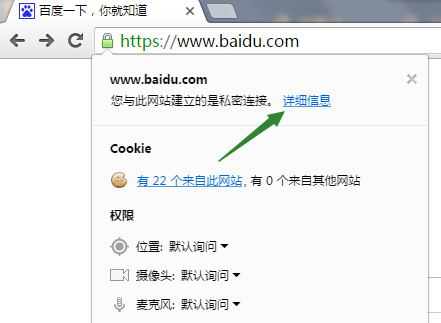 - 用 Chrome 打开百度首页,在 https 左侧我们会发现有一个绿色的锁头。