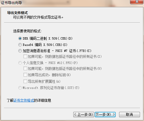 我们将其导出成 X.509 格式的证书,以. cer 作为文件扩展名,最后保存到本地机器如下所示:
