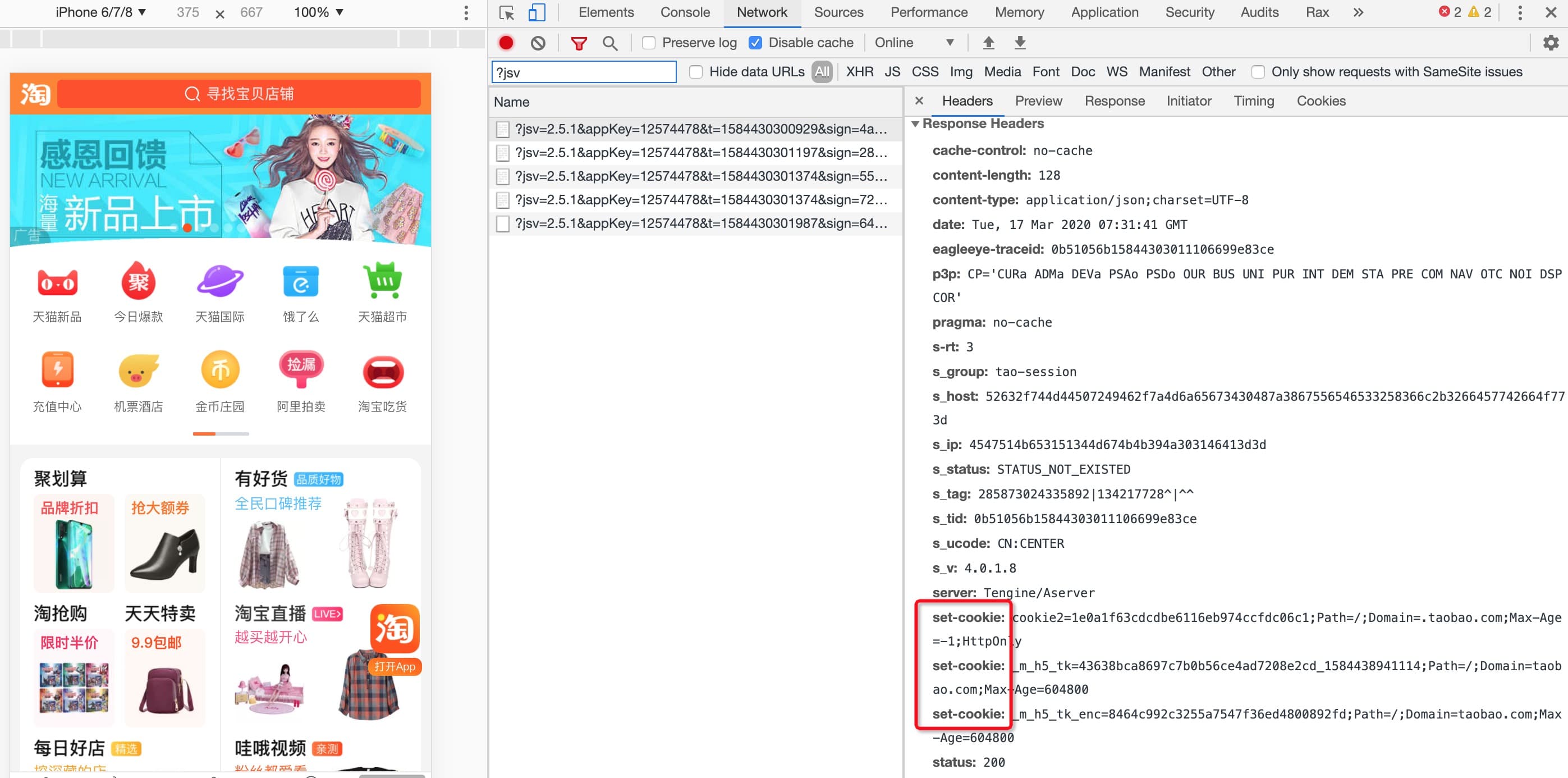 我们在请求返回的 Response Headers 可以看到 Set-Cookie 字段: