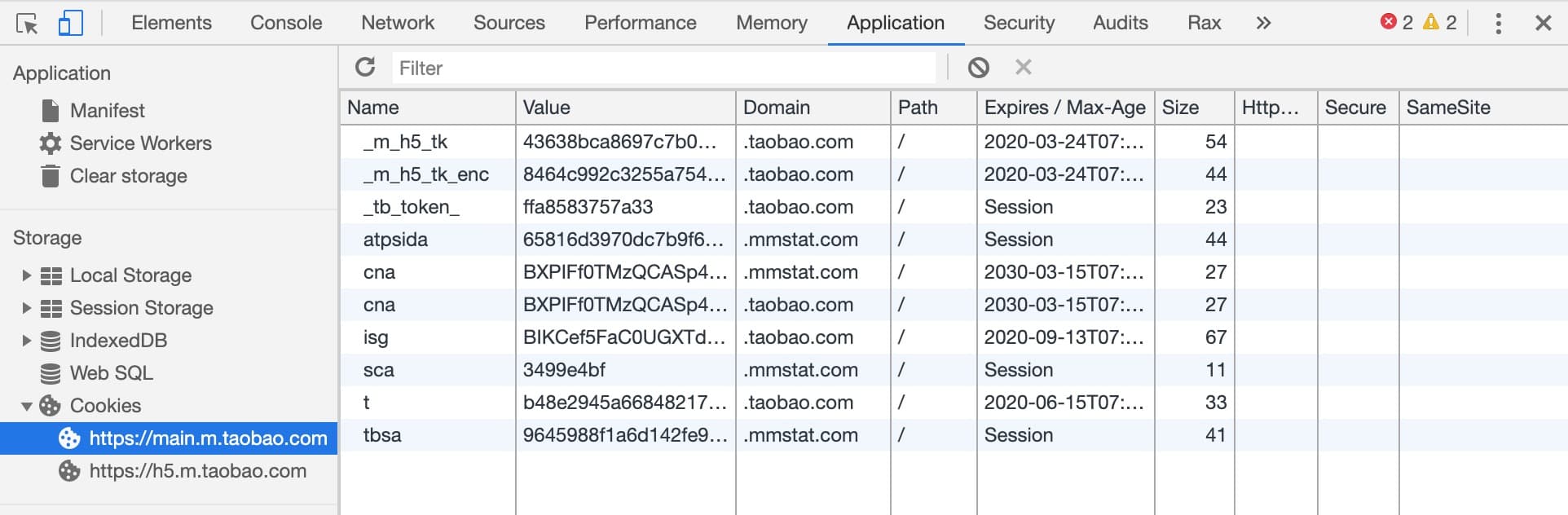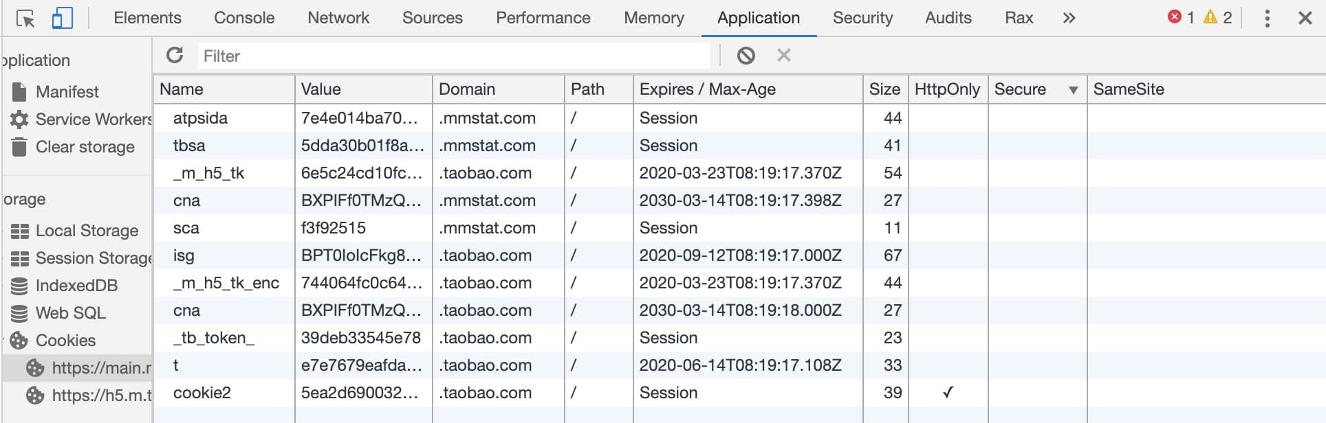 我们可以在浏览器的开发者工具中查看到当前页面的 Cookie: