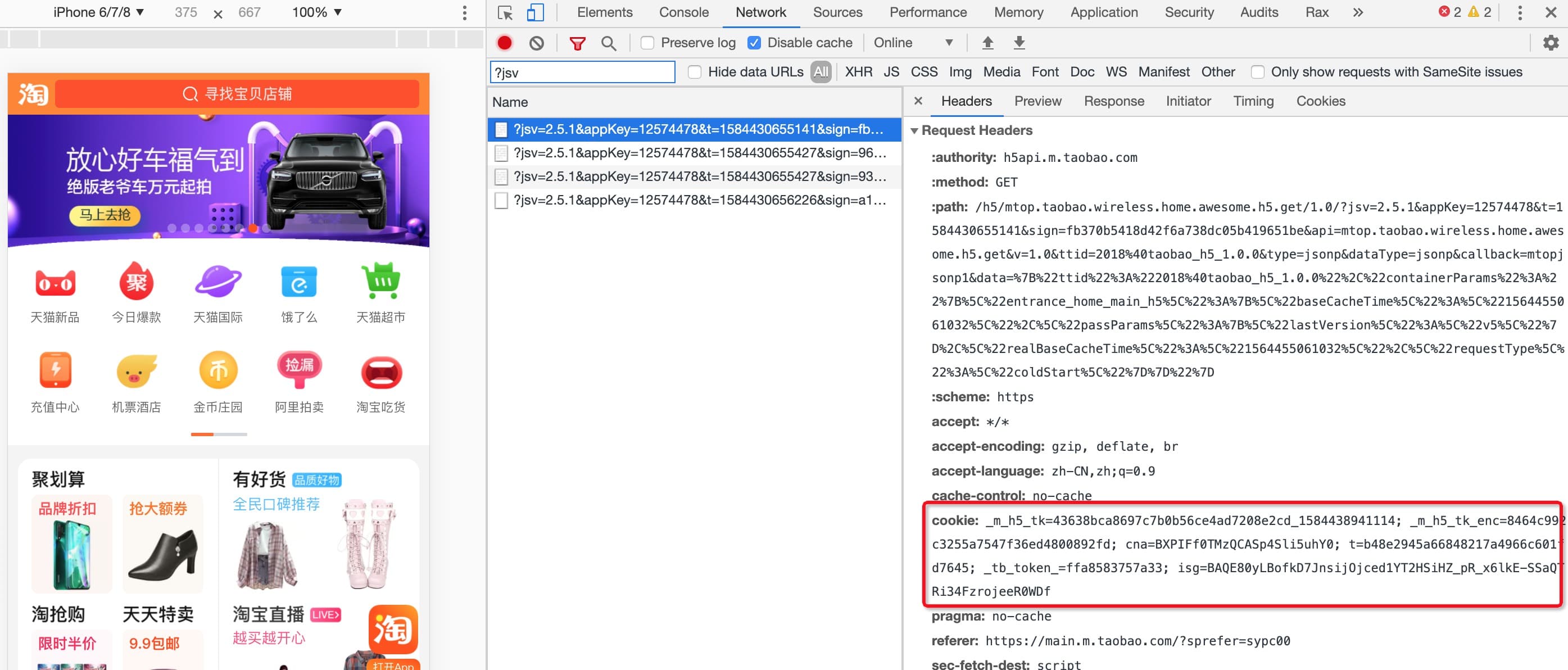 我们以 https://main.m.taobao.com/ 为例来看下这个过程: