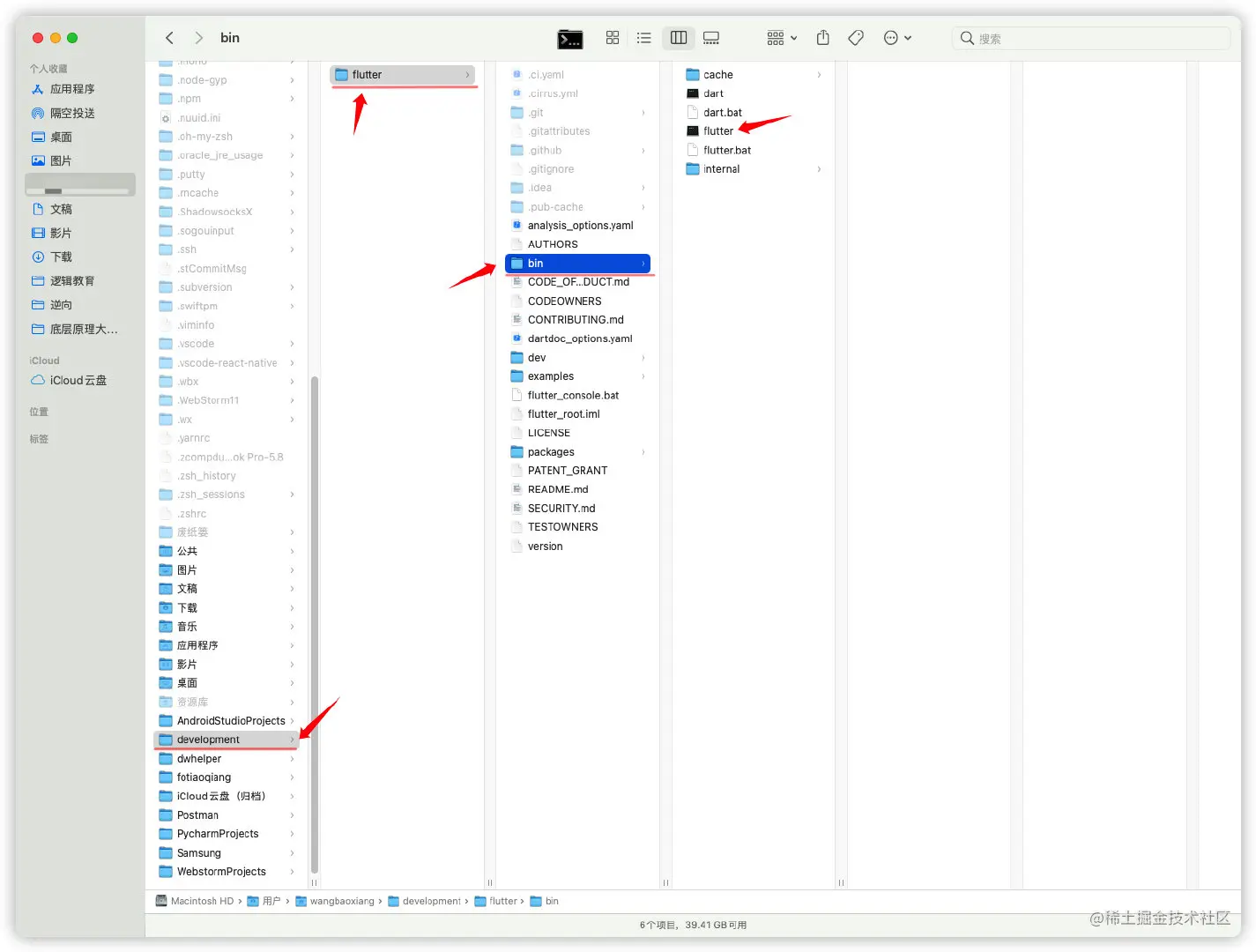 Flutter 的指令在 bin 目录,所以配置环境变量时要指定到 bin 目录才行