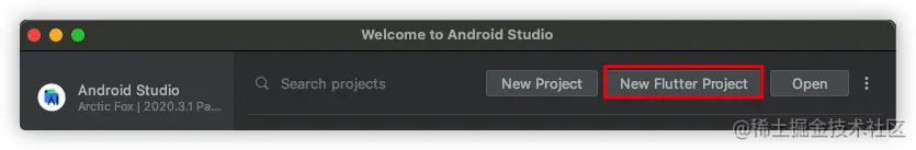 安装完成之后,重新启动Android Studio时我们可以看到创建Flutter项目的入口: