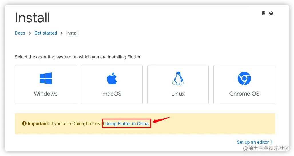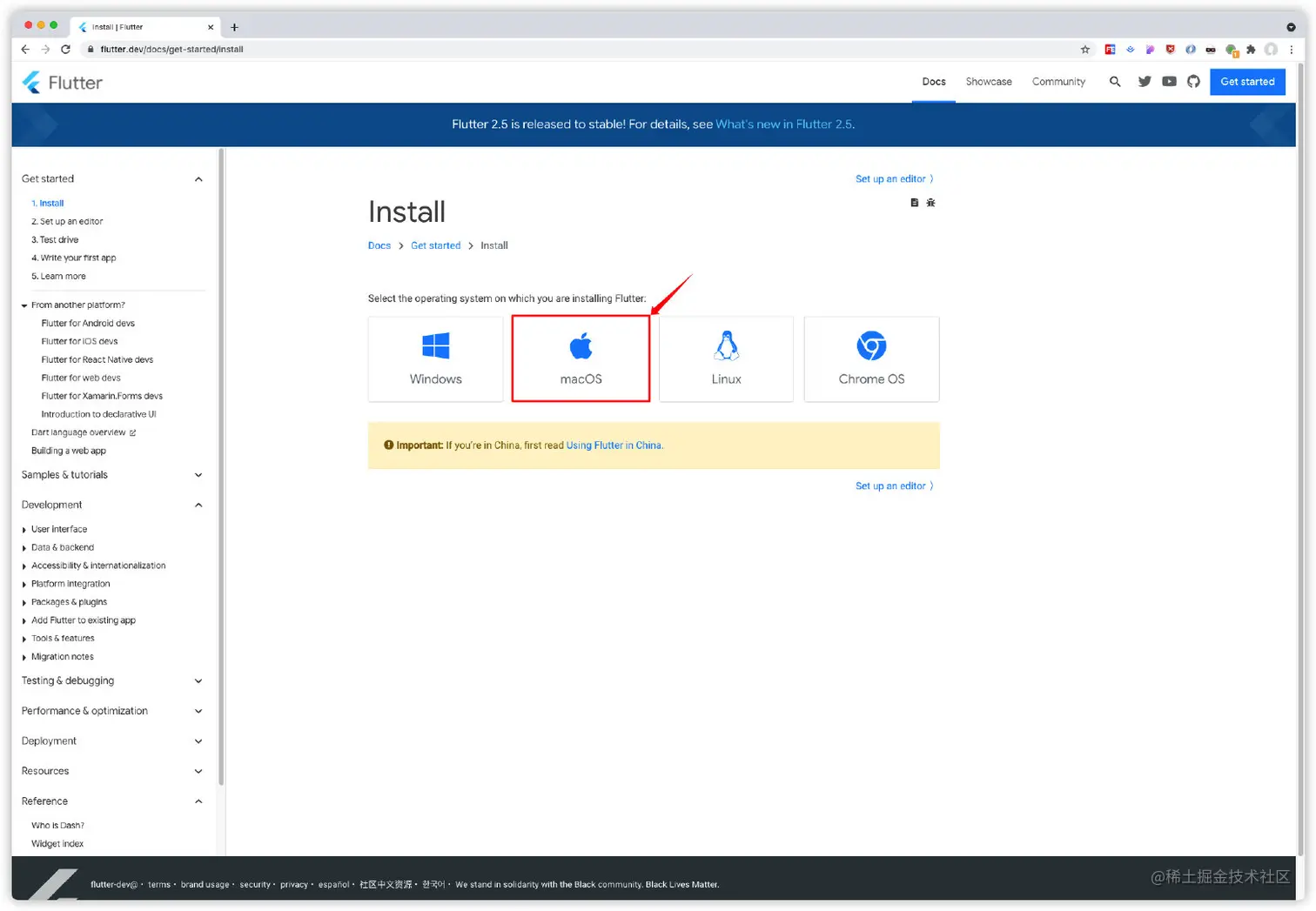 关于Flutter的安装流程,我们也可以直接参考官方网站,国内可以直接打开;