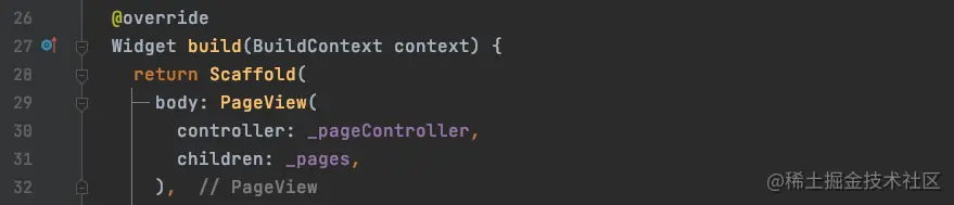 接下来,我们将Scaffold的body使用PageView: