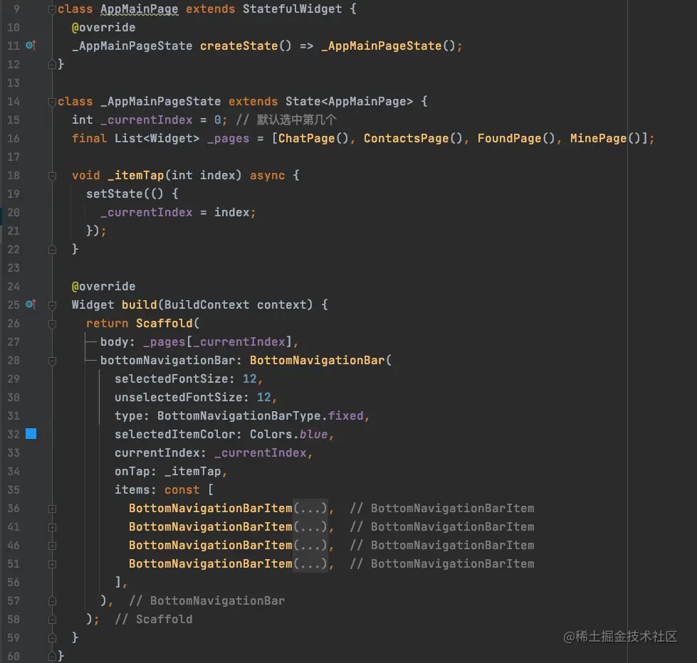 我们先来看一下当前底部导航栏切换界面的代码: