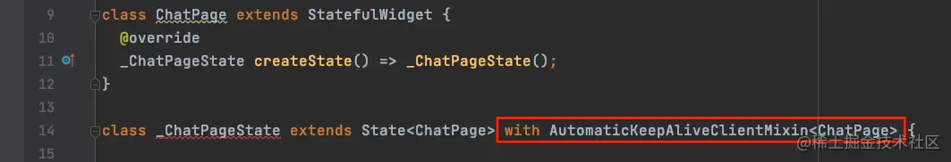 with使用该关键字试下混入;AutomaticKeepAliveClientMixin保持该页面状态时,需要混入的MixinsChatPage传入泛型,也就是对应的页面;