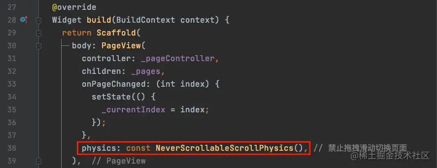 如果想要禁用滑动切换页面的效果,可以通过PageView的physics属性: