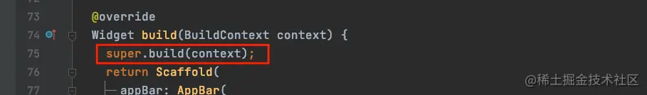 最后,我们需要在原来的渲染方法build方法中实现super.build(context):