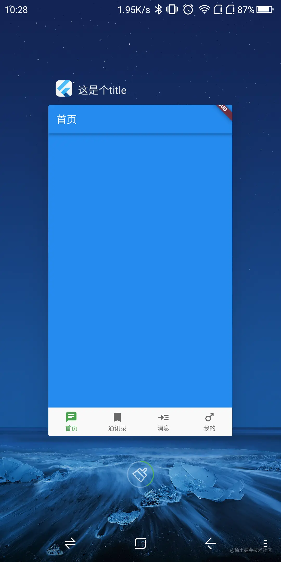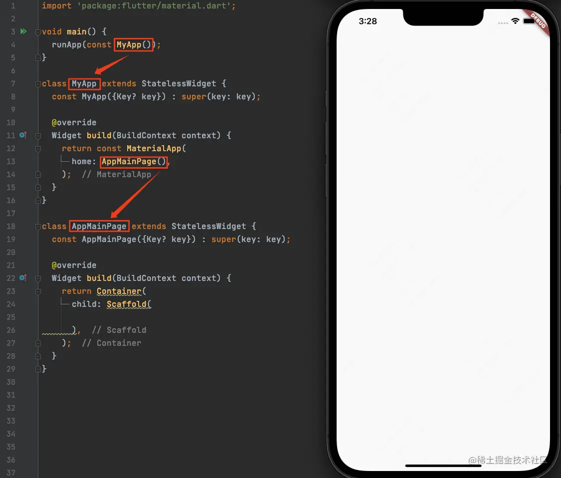 我们在前边介绍过MaterialApp这个小部件,在Flutter中,我们常用的创建App框架的手段就是基于此部件进行封装的,那么我们先来基于MaterialApp这个部件,把项目的主界面搭建出来: