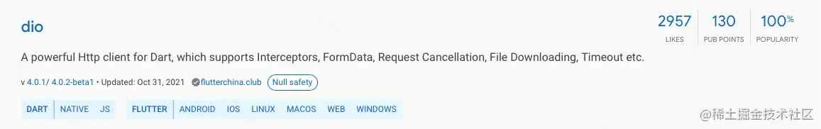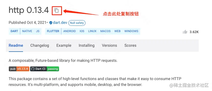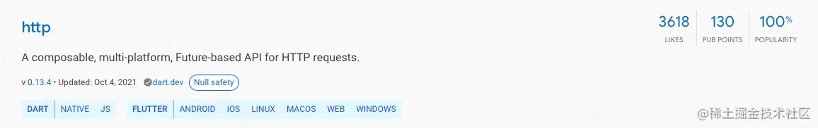 首先进入 http 的地址:pub.dev/packages/ht…,网页内容如下: