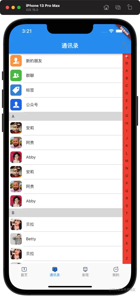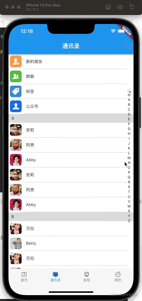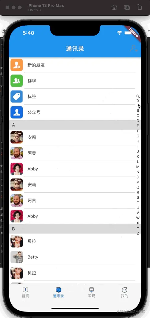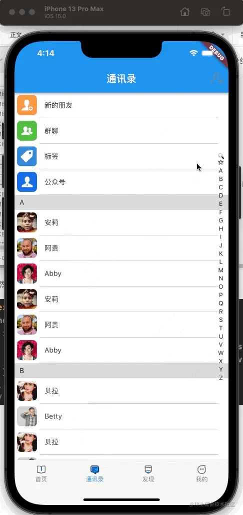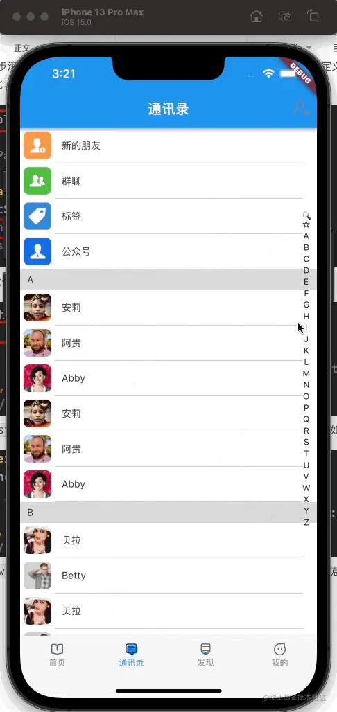简单的通讯录列表页我们已经实现了,今天我们来实现通讯录的索引条;我们都知道通讯录的索引条是悬浮在列表上方的,在屏幕右侧;那么,我们的构建方式就要进行修改;