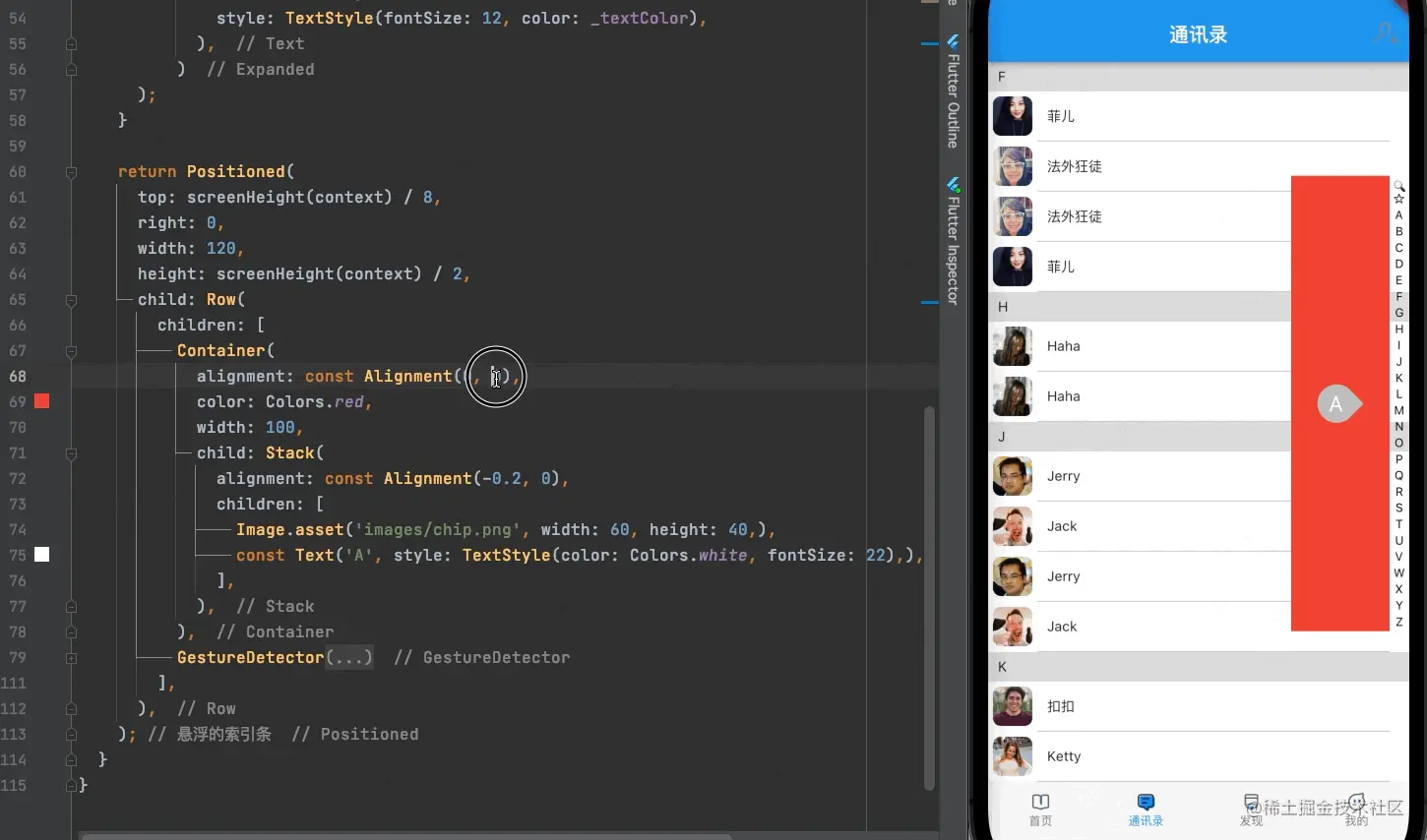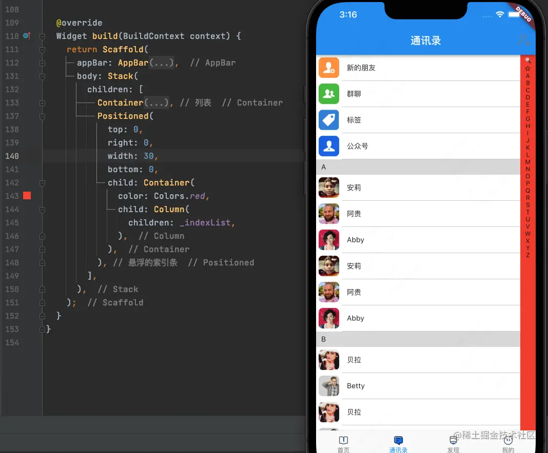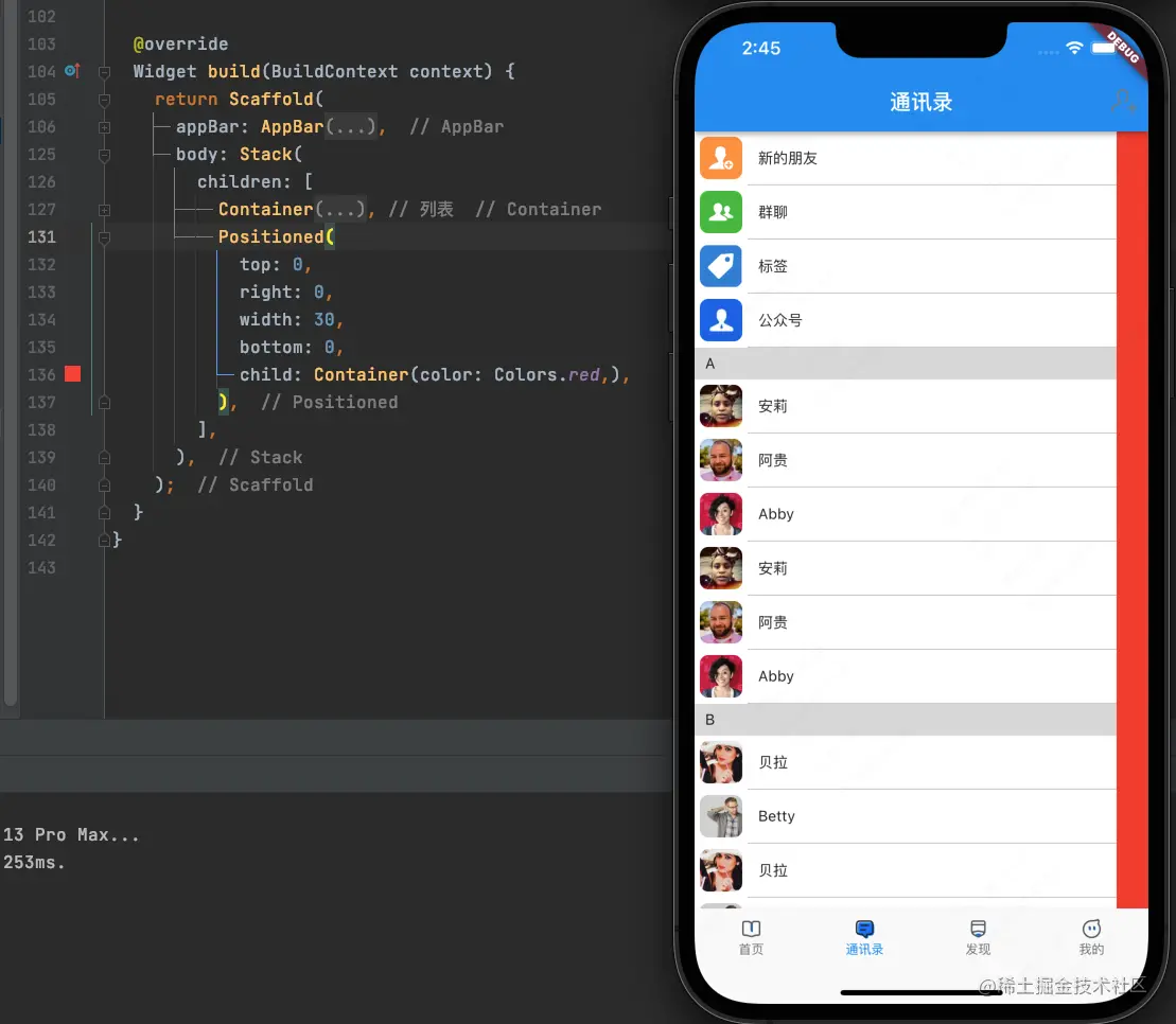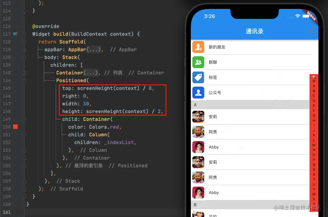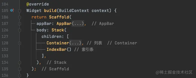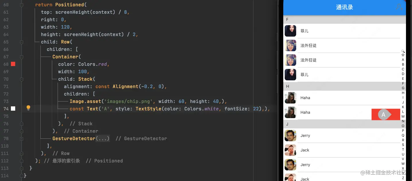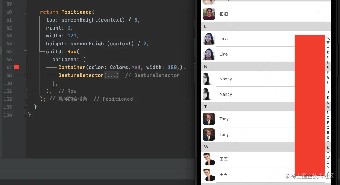 我们需要使用Stack来构建整个界面,使索引条显示在列表上面: