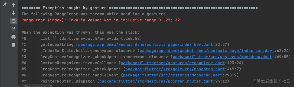但是此时是有问题的,如果我们滑动的区域超出了索引条的区域就会报错: