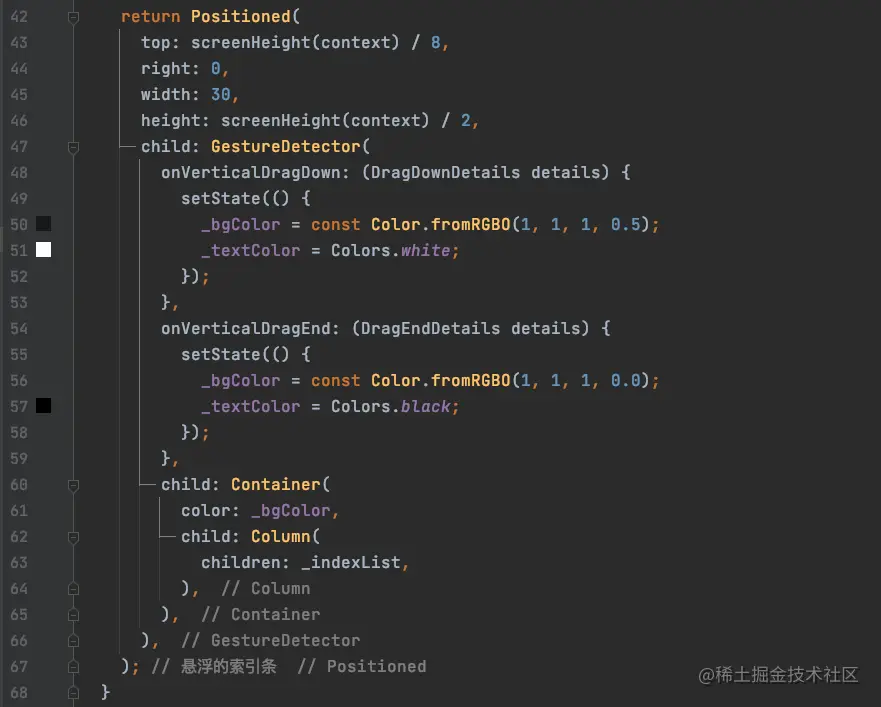 final List<Widget> _indexList = []; // 索引条Widget数组