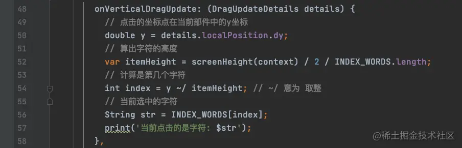 int index = (y ~/ itemHeight).clamp(0, INDEX_WORDS.length - 1); // ~/ 意为 取整 区域限制在[0, length-1]