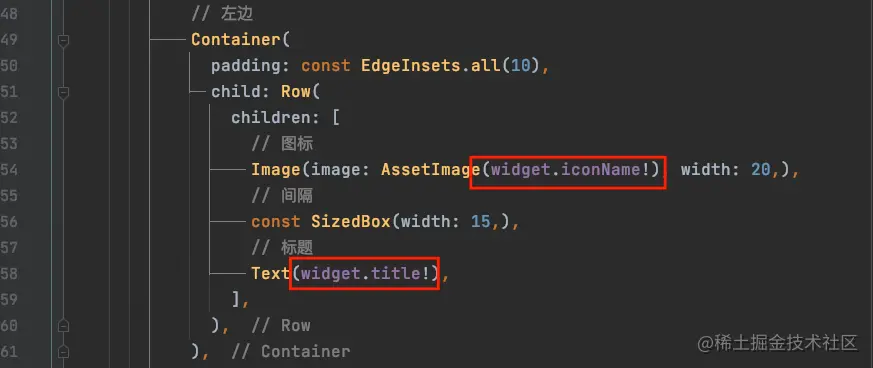然后,将原来的build方法,转移到_FoundCellState中来,转移之后会发现,原来的属性不能直接访问了,此时我们需要使用widget.title来访问title属性: