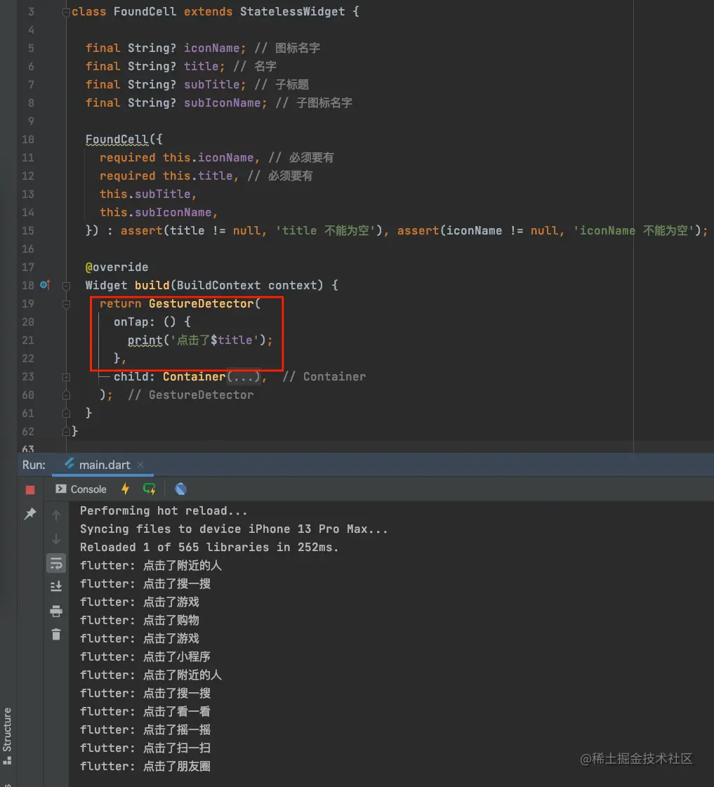 widget指向我们定义的StatefulWidget,也就是FoundCell;
