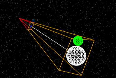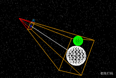 下图椎体就是上面设置视野角度、长宽比、近截面和远截面的演示的相机透视椎体。