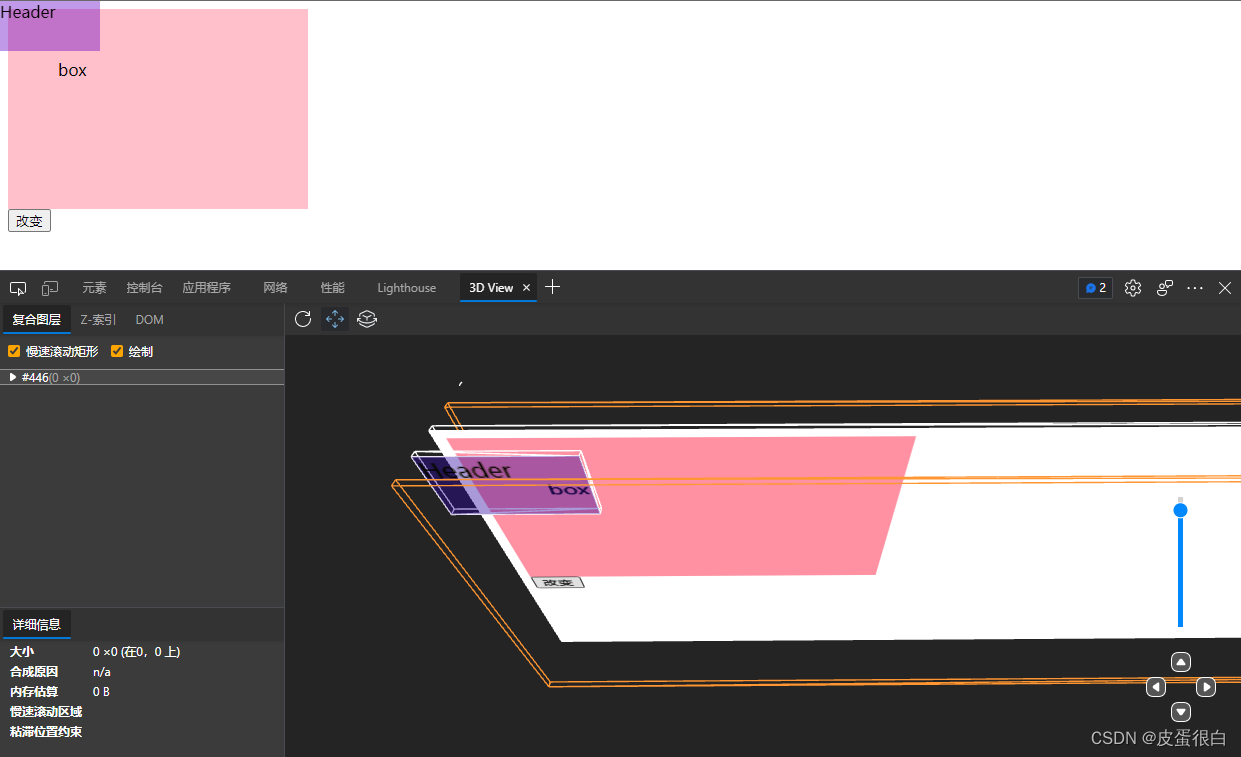 开发人员工具的 Layers 面板(Edge 将功能挪到了 3D View 面板),可以查看浏览器生成的绘制图层,据此可以查看 HTML 内容的图层分布,可以将不需要重绘的内容单独提取到一层,降低绘制复杂度,避免其他内容的改变导致这块内容重绘。